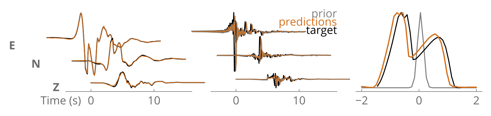 Another interest of ours is source time function (STF) deconvolution, for which it has historically been difficult to choose the best empirical Green's functions (EGFs) and evaluate uncertainty. Building on recent advances in deep probabilistic imaging, we are developing tools to objectively perform STF deconvolution in a probabilistic framework. These tools will allow us to compute posterior distributions of STFs and stochastically estimate the optimum EGF.